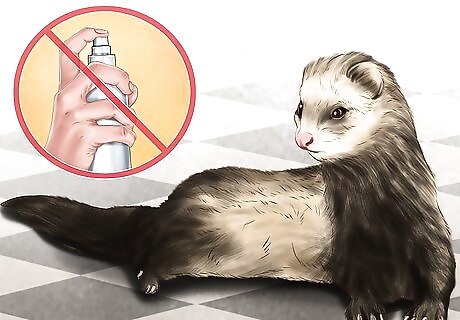 Do not expose your pet to DEET. While DEET is a standard ingredient in many bug sprays designed for human use, DEET is extremely dangerous for your pet. Avoid spraying your ferret with any bug spray designed for use on humans. Similarly, don't use bug spray meant for dogs. There are several natural bug sprays designed for use on pets. They are available online and at most pet stores. Before using these sprays, check with your vet to make sure they're safe.