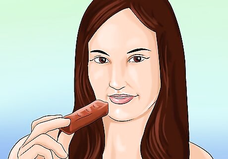 Suck on candy. Buy a bag of ginger or lemon hard candy or mints. When you start to feel nauseous, take out a piece of candy, smell it deeply, and then pop it into your mouth. Suck on the candy until it's gone and you feel better. Experiment with which candy flavors work the best for you. Ginger can be more soothing than lemon or mint. Sucking on a candy also distracts your body and mind from the feelings of nausea.