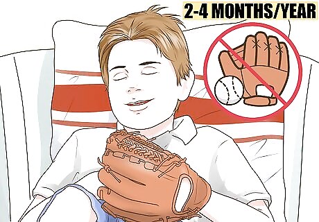 Give a pitching arm a legitimate vacation from throwing. Traditionally, baseball has been a seasonal pursuit from late spring into early fall, leaving the rest of the year for other sports like football, basketball, or soccer. In the quest for college scholarships and multi-million dollar pro contracts, however, many youth pitchers have begun playing baseball year-round in multiple overlapping leagues. Such efforts, however, are probably doing more harm than good. Many experts recommend that youth pitchers should take off at least four months per year, with at least two or three of those taken consecutively. Extended periods of absolute rest from the arm motion of throwing a baseball are vital to muscle healing and development, especially for the growing bodies of young athletes.