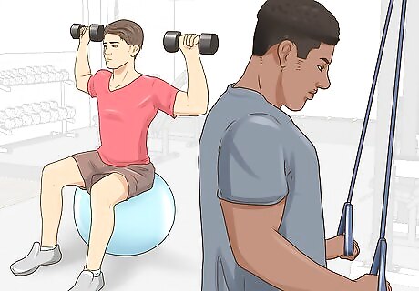 Strengthen a pitcher's shoulder, leg, and core muscles. If you look at successful “power pitchers” with exceptional fastballs in the big leagues, you'll notice that most of them have thick, muscular legs that they use to propel their bodies toward home plate. Leg and core muscles are stronger and more durable than shoulder and arm muscles, and all of these muscle groups should be developed and used in concert to get the best (and most arm-friendly) results out of pitching. Consult with experienced sports trainers, physical therapists, sports medicine doctors, or pitching coaches to develop a “global strengthening program” to increase muscle stability and strength in these key areas. For instance, the “Thrower's Ten Program” uses resistance bands, dumbbells, and an exercise ball in a simple ten-step regimen intended to strengthen a pitcher's shoulder, core, and leg muscles. Strength programs like the “Thrower's Ten” are intended for use during baseball season (in this case, three or four times per week), but should not be used shortly before or after a pitching performance. Be sure to allow time for muscle rest and recovery.