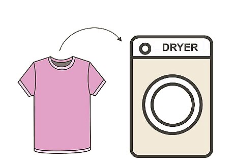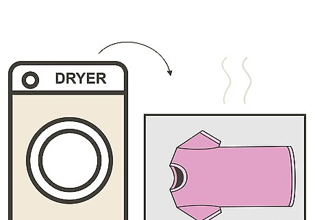 Tumble dry the fabric. Place the damp fabric in the dryer. Use low heat and a gentle or delicate cycle, if available.
