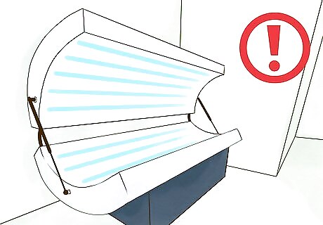 Avoid using tanning beds. The Center for Disease Control and Prevention (CDC) has determined that indoor tanning is unsafe, as it increases the risk of cancer. Even infrequent use places you at greater risk of developing skin cancer, in addition to other harmful effects of UV radiation. In short, tanning beds should not be considered a safe way to tan. If you do occasionally use a tanning bed, wear eye protection designed to be used in this scenario. For a safer option, use a sun-free tanning lotion.