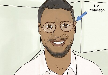 Equip your eyeglasses with UV resistant lenses. If you wear eyeglasses, use lenses that help protect your eyes against UV radiation. While most lenses do so to some degree, some require an added treatment for 100% protection. Next time you get new glasses, ask your optometrist about the best option for UV protection. Note that UV resistant contacts can help, but cannot fully protect your eyes from UV radiation.