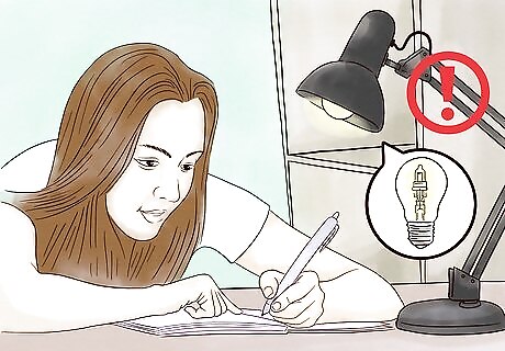 Don’t sit too close to fluorescent lighting. Fluorescent light bulbs, which are commonly used in various indoor environments, emit small amount of UV radiation. While this radiation does not usually cause significant risk, it’s important not to spend time within a foot (30cm) of the bulbs for more than an hour. Though blacklight bulbs do rely on UV light, they do not emit enough radiation to be considered a threat.