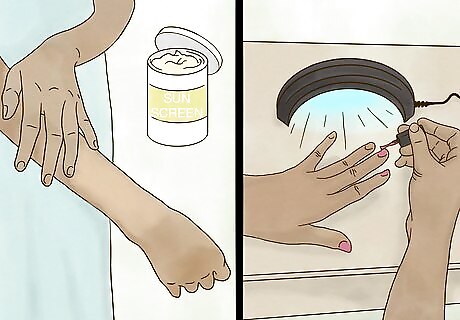 Apply sunscreen to your hands at the nail salon. The lamps used at nail salons to dry your nails use UV rays to do so. While the amount of radiation and risk of harm is low, it’s worth applying a broad spectrum sunscreen with at least 15 SPF to the back of your hands before getting your nails done.