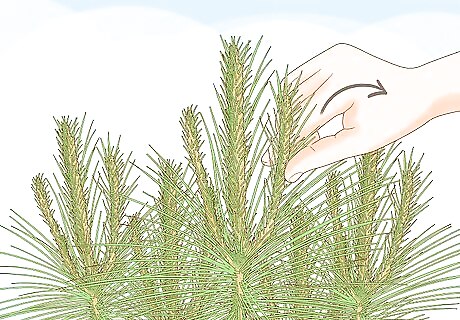 Pinch back “candles” by hand in spring. The needles of pine trees grow in bunches off of thin branches known as candles. To limit outward growth and make the internal foliage denser, you can trim these candles by half (or less) by pinching them with your fingernails. During the spring, the candles should be tender and small enough for you to prune with your fingers. Don’t use pruners unless you have to, as they will cut through the developing needles and therefore may cause brown tips at the end of the branch.