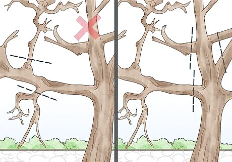 Leave the “branch collar” behind when you remove a branch. At the point where a branch emerges from a trunk or thicker limb, you’ll see a slightly thicker ring known as the branch collar. Instead of cutting the branch completely flush to the trunk or limb, leave this small collar behind when pruning. Doing so will cause less damage to the trunk and make it less susceptible to diseases.