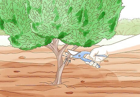 Prune or shear them for shape in spring and summer. As the name indicates, random branch evergreens grow in less naturally-structured shapes than do pines, spruces, or firs. This means you may want to be a bit more aggressive in shaping them to suit your aesthetic preferences. You can shear random branch evergreens several (e.g., 2-3) times during the spring and summer, if you wish. However, as you shear and prune for shape, make sure to leave behind some of the new growth. Random branch evergreens don’t need to be shaped, and will do just fine if you let them grow naturally.
