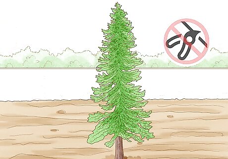 Leave pines alone for the most part. Pine trees typically develop a pleasing, natural shape all on their own and rarely need your assistance. If space isn’t an issue and there isn’t disease or damage to deal with, it’s easiest and healthiest to just let them go without pruning. Prune them for width only if they’re tightly bunched with other trees or are encroaching on a structure such as your house. It’s best not to try to prune them for height.