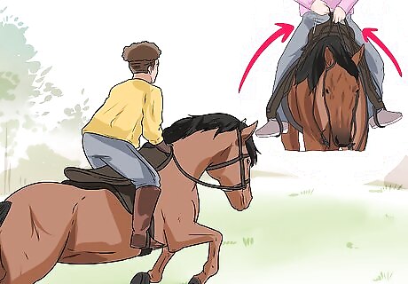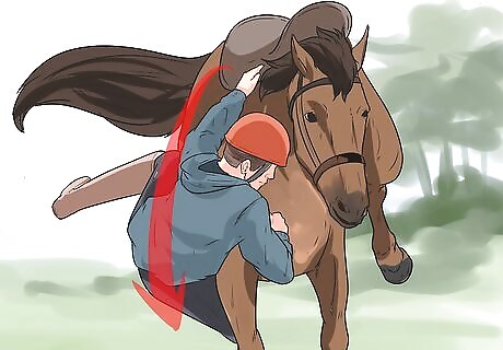 Let your horse run. If you are in a safe place (like a big, flat, open field), your horse is likely to run for a bit and eventually calm herself down. Just stay on, stay calm and let them get it out of their system. Hold on tight, and put your body in a proper position for galloping.