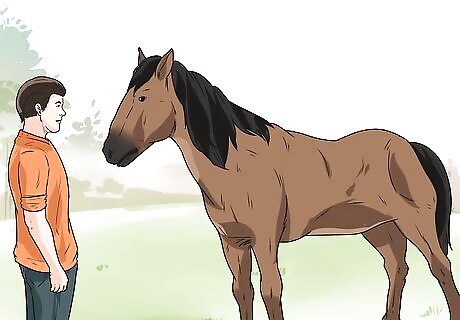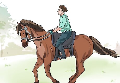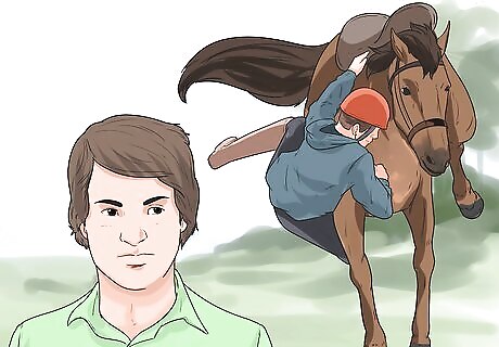 Ride a trusted mount. Particularly if you are inexperienced at riding, do not ride a horse that is untrained or not fully broken. You should always ride a horse that is at your skill level, and you should get to know the horse and its personality before riding. Some horses startle easily or exaggerate their responses to a pull on the reins or a tap on the sides. Riding a laid-back, well-tested horse is the safest way to avoid your horse bolting unexpectedly.