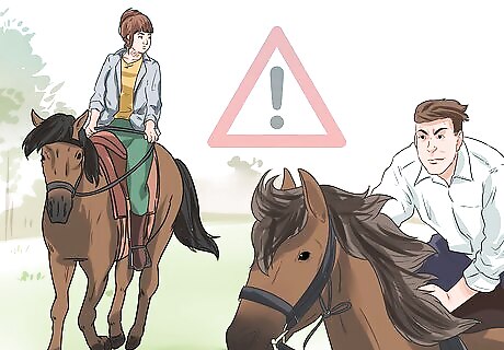 Let others know you are out for a ride. Better yet, until you are very experienced at riding, never go for a ride alone. Ask an experienced rider to go with you. Another rider can help you slow a runaway horse, or can get help if you are injured in a ride.