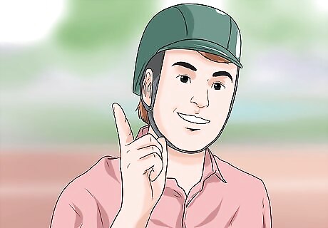 Wear a helmet. Horseback riding, like any sport, carries some potential for injury no matter how cautious you are. Wearing a helmet will protect your head from injury if you happen to be thrown from your horse or if you have to make an emergency jump from a running horse. One study found that horseback riders not wearing helmets were four times more likely to die due to injuries from riding than those who wore helmets. Attractive riding helmets are easy to find if you ride English style. While less common for Western-style riders, helmets are still important for safety; you can wear an English style helmet or another helmet approved for riding. Look for the letters ASTM-SEI, which indicates the helmet has been safety-approved.