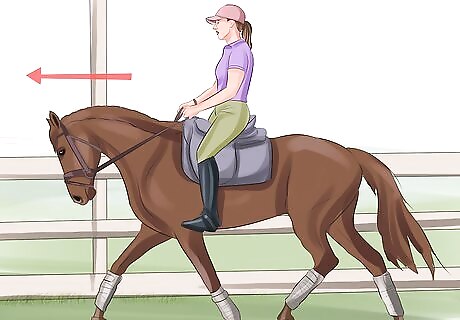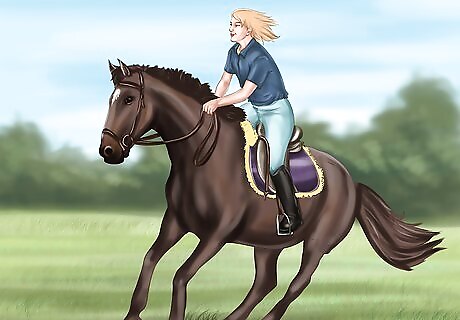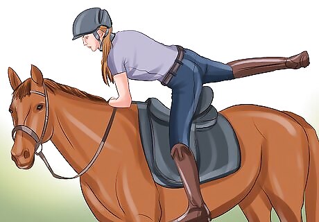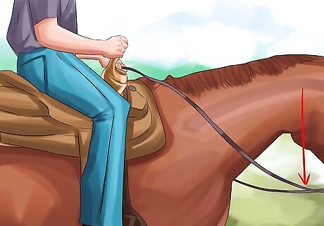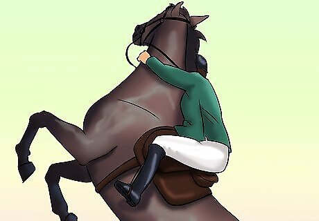 Loosen the reins. As soon as you feel the horse begin to rear, try to loosen the reins and resist the urge to pull back or down. You can loosen the reins by pushing your hands up towards his mouth. Lean slightly forward in the saddle and tip your upper body towards his neck, but stay centred in the saddle.