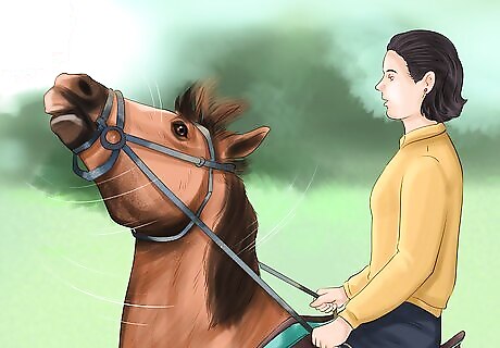 Don’t hit your horse between the ears. Some people advise hitting your horse on the poll (between the ears) to punish him for rearing, or even intentionally pulling him to the ground. This could end badly, with injury or horse. While it may stop him rearing at that moment, it does nothing to help prevent him rearing again in the future.