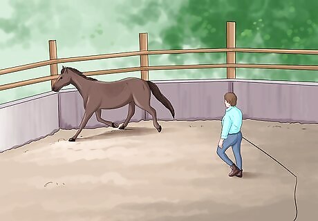 Don’t reinforce bad behaviour. If your horse rears, and you are not certain you can correct him, it is definitely not a bad idea to get off him. Some people try to avoid dismounting because they don’t want the horse to think he has won, and reinforce his behaviour. It’s perfectly fine to get off, but it does matter what you do next. If you have dismounted, longe the horse, and do some ground work to get his feet moving. You will get him thinking again and regain his respect. Do not rub him, or pat him, and walk him back to the stable. Doing this will only reinforce his bad behaviour and can encourage him to rear again in the future.