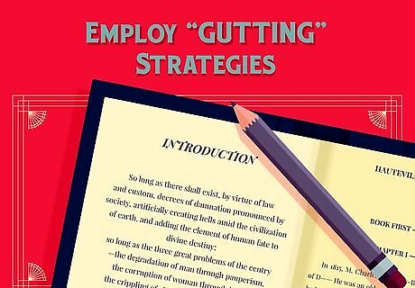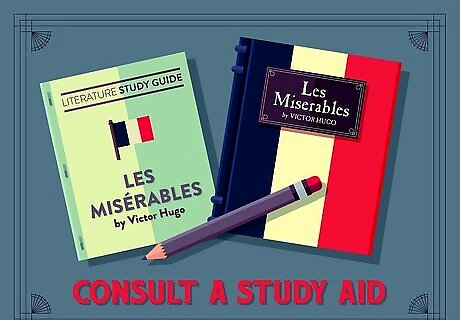 Employ “gutting” strategies. People who read a lot of texts, including academics, use techniques to quickly “gut”—or get the most important information—from reading assignments. Learning how to gut Les Mis may help you more effectively and enjoyably get through the book. The most important sections of any text are generally the introduction and the conclusion, or the first few and final chapters. Make sure to read these thoroughly and then skim through the remainder of the text for important details. In many cases, just reading the first page of a novel can give you a general idea of a book’s subject. Skimming the book, which is the equivalent of reading about 450 words a minute, can help you get the important plot points of the book without focusing on language, character development or minor themes. You may also want to use a study aid that provides plot summaries to help you distinguish what you should read, skim, and simply skip. You can get a grasp on the plot from a study aid and then skim for important literary devices such as dialogue or imagery.