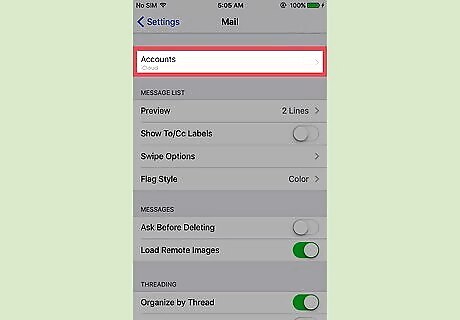Scroll down and tap Mail. It's in the fifth group of settings.