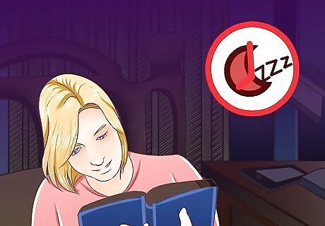 Read a book before going to bed. Diving into an adventure while in bed can be a great way for you to preoccupy your thoughts and stimulate your mind. Try reading a classic or feel-good-book like Treasure Island or Harry Potter. Read until your eyes feel heavy and drift off to sleep.