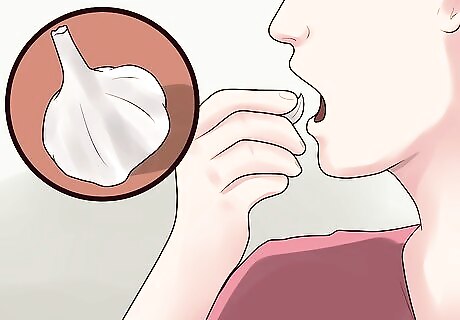 Eat garlic. Garlic may help keep your cholesterol levels at a reasonable number. It's possible it can slightly reduce cholesterol levels without causing any side effects, in addition to possibly preventing blood clots, reducing blood pressure, and protecting against infections. Although it is best to take it in raw form, it is equally efficacious in other forms like pickles. Next time you hit the supermarket, pick up a tub of freshly peeled garlic cloves, and challenge yourself to make sure it's gone before the "best by" date. Chop up and toss on pizza, in soups, or on side dishes.