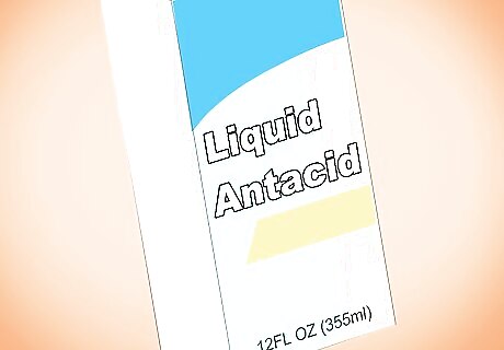 Take antacids for gastrointestinal issues. Antacids or anti-ulcer drugs can help with stomach pain due to ulcers, heartburn, indigestion, or acid reflux. There are four types of these drugs: proton pump inhibitors (PPIs), H2 receptor antagonists (H2RAs), Misoprostol, and antacids. Common antacid and antiulcer medications include Nexium, Prevacid, Prilosec, Zantac, Tagamet, Pepcid, Cytotec, Tums, and Rolaids. Side effects of PPIs include increased bone fractures in people over 50. Women should not take misoprostol pregnant or trying to become pregnant.