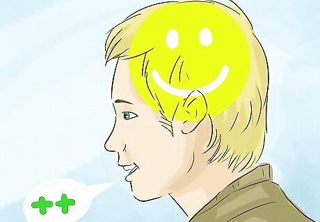 Surround yourself with positive people. If you want to be more positive by nature, look for role models. Do not spend time with people who whine and complain and tend to see things very negatively. Instead, look to people who seem to have a positive outlook overall These people will help you reframe situations in a positive light. When facing a difficult situation, don't ask your notoriously pessimistic brother for advice. Instead, call up your mom, who always seems to have a positive outlook. Make friends with co-workers who seem upbeat and cheery. Make a coffee date with the secretary who always has a smile on her face. Pay attention to how positive people view the world and how they frame difficult or trying situations.