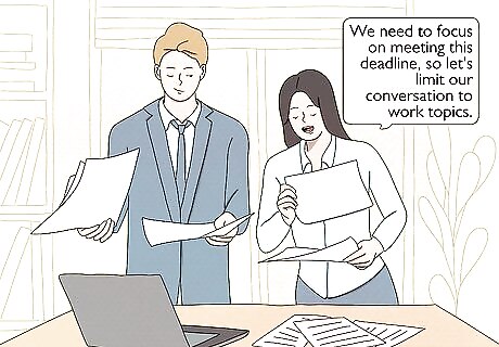 Maintain a professional demeanor. Show them that you are only interested in your professional relationship by avoiding casual language or gestures. When you keep the conversation focused on professional topics, you show them that you aren't interested in anything romantic. If they ask for personal details, turn it back to the workplace. Say, “We need to focus on meeting this deadline, so let's limit our conversation to work topics.”
