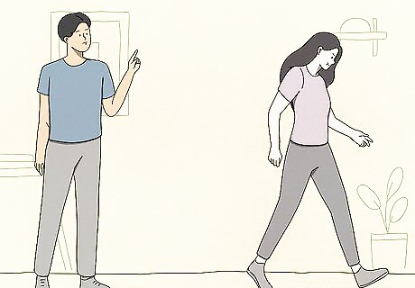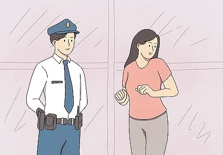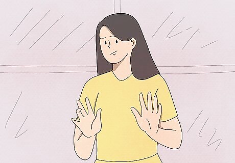 Use your body language. Support your statements with your nonverbal gestures. Back away from the person, and put your hand up as if to say “stop.” Keep your body rigid and your face stern. Maintain your personal space.