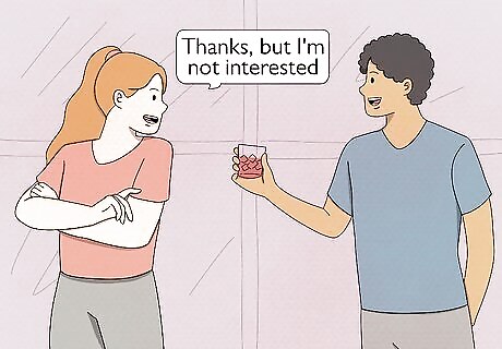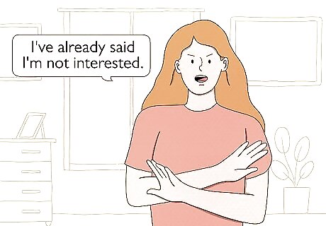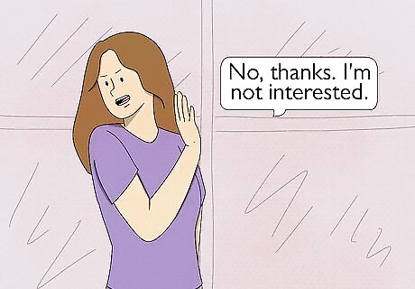 Avoid explaining your rejection. You don't have to explain your choices, so state your refusal and then leave it alone. If the person presses you, say, “I've already said I'm not interested.” Never apologize for how you feel. Don't engage in a conversation with them if they are trying to convince you to change your mind.