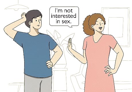 Avoid implying that things could be different under other circumstances. It might feel easier to tell them that things might go differently if you were single, if the situation were different, or if you didn't have something else to do, but this will only make the situation worse. They will think that there is still a chance and that you really are interested. For example, don't say, “Maybe if there weren't so many people at this party,” or “I have to get up early tomorrow.” Instead, say, “I'm not interested in sex.”