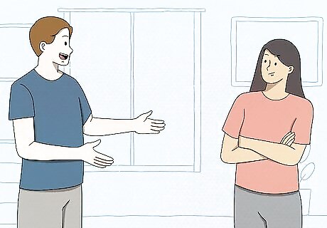 Keep your distance. Your body language is important because making the wrong moves can undermine your refusal. Avoid the temptation to comfort the person with a hug, touching, or sitting close together. Instead, create space between you, cross your arms over your body, and keep your facial expression serious.