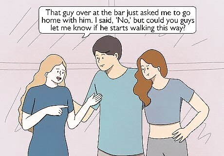 Tell your friends about the unwanted attention. Your friends can help you monitor the situation and avoid interacting with the person again. They can also help you in the event that the person decides to harass you. Say, “That guy over at the bar just asked me to go home with him. I said, 'No,' but could you guys let me know if he starts walking this way?”