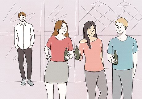 Move away from the individual. Minimize your contact with the person. After you tell them no, walk away and put distance in between you and the person making the advances. Focus your attention on who you came with or enjoying the atmosphere of the place.