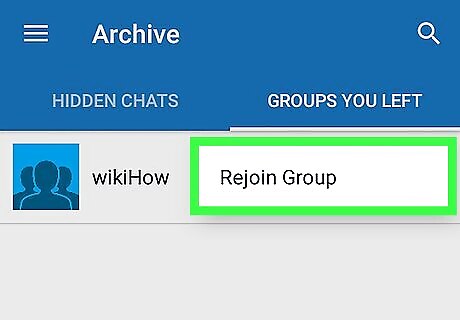 Tap Groups You Left. It’s in the blue bar at the top of the screen. All groups you’ve left will appear.
