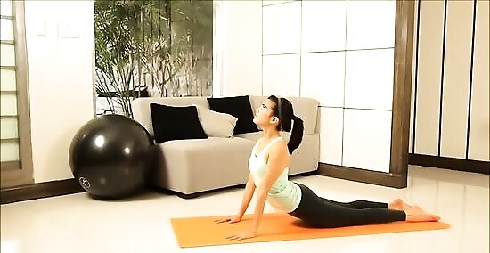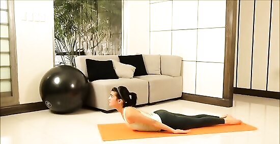 Turn over onto your stomach. Lift your upper body, as far as possible, with your back muscles and hold for a minute. Your head should be positioned in the back, your hands placed laterally from your body on the floor. Breathe, relaxing into the cobra pose. Send a beam of light from the head down the back and think "Light".