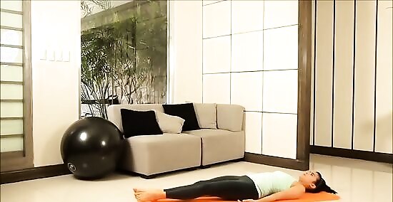 Roll out from the candle pose. Again, take up the supine position, and stretch your legs. Put your hands on your belly and move gently your feet. Stop your mind and focus for a minute just on your belly.