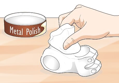 Apply a metal paint to give the part a fresh finish. For a long-lasting finish, get an acrylic or latex spray paint designed to be used on metal. Hold the can over the part, then sweep it from side to side to cover it. Wait at least 4 hours for it to dry, then add at least 1 additional coat. When you’re done, the part will look fresh and new whether it belongs on your car, in your home, or somewhere else. Latex paints are water-based and a little easier to clean. Acrylics are slightly more expensive but resist temperature changes better.