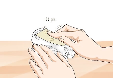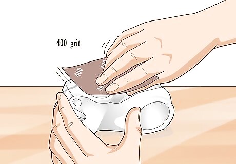 Sand the piece with 400-grit sandpaper to smooth it out. Go back over the entire piece of metal with the finer sandpaper. Buff it in a circle with a light amount of pressure. When you’re done, wipe it off with a tack cloth or rag. Make sure the entire piece looks and feels smooth before painting or polishing it. Always start with the coarsest sandpaper you have, which will have the lowest number. Work your way up to the finest-grit one.