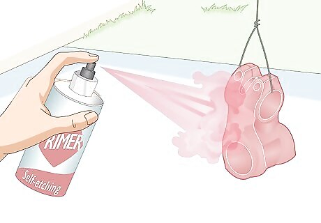 Spray a self-etching primer onto the metal if you’re going to paint it. Find a primer that is compatible with the type of metal you have. Shake the can, then, hold it about 6 in (15 cm) from the part. Sweep it along the part at a slow but steady rate to cover it. Let it dry for at least 30 minutes afterward. A self-etching primer is a special type of primer that burns onto a surface. It’s really effective on aluminum, which is difficult to paint otherwise. You can use 400-grit sandpaper to smooth out the finish so the paint sticks better to it.