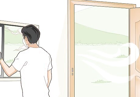 Open nearby doors and windows to ventilate the area. Get some air circulation in the room to help clear out the harsh scent of any cleaners you use on the metal. If you have any ventilation fans available, turn them on. You could also set up some electric fans to blow air towards the doors and windows. Better yet, work outdoors if you are able to. Keep other people and pets out of the area until you’re finished working and have had a chance to clean up.