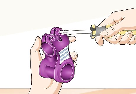 Take screws and other detachable parts off the anodized metal. These parts usually won’t be anodized, so they don’t have to be exposed to any harsh chemicals. First, separate the anodized component from any other parts. Then, look for any remaining screws and use a screwdriver to loosen them. Make sure you pull apart the metal, if it opens at all, to look for any smaller parts inside. For example, if you have an anodized yoyo, it will have a small bearing inside of it. Twist the halves open, if possible, to remove the bearing. For something like an RC car, you could unscrew the anodized parts. They are easier and safer to treat individually. If you are unable to remove a part, you could try treating it anyway. Keep in mind that the chemical you use could damage anything it touches, so limit how much gets on the parts as much as possible.