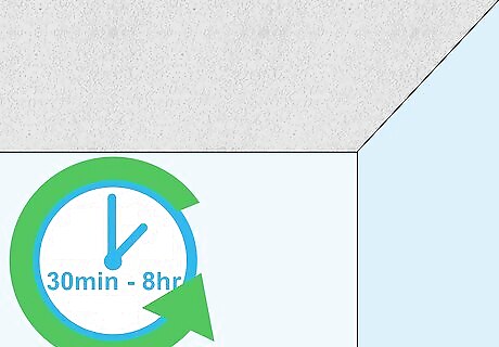 Wait for the Artex to soften. Depending on the product you use and the thickness of the Artex, you may need to wait 30 minutes to 8 hours before the Artex softens enough for removal. When dealing with painted Artex or notably thick applications, you may need to cover the area with foil or plastic film and allow it to sit overnight. The film should prevent the solution from drying out, and the prolonged soak time should ensure more thorough softening.