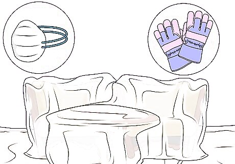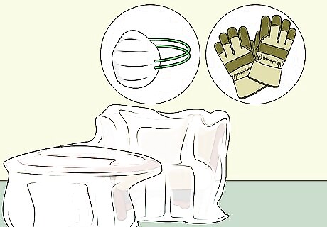 Protect the surrounding area. Remove as much nearby furniture as possible, then cover the rest of the furniture and any appliances with plastic drop cloths. Lay a drop cloth or newspaper over the floor, as well. Wear working gloves to protect your hands. Softened Artex has the potential to create stains, so you should also change into clothes you don't mind dirtying before working on this project.