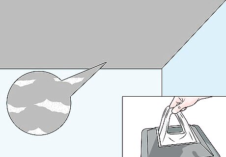Examine the area. After peeling away the Artex from the entire area, carefully examine your work to verify that no traces of Artex remain. If you do find some remnants of Artex, work over those patches with the steamer and scraper again. Continue doing so until you successfully clear the entire area. Once you finish, you can gather the bits of removed Artex into plastic garbage bags and dispose of them. Note that steamed Artex will become dusty once it dries, so you'll need to work carefully to avoid disturbing the dust. Remove the drop cloth, as well, and return the room to normal. The project is over once you complete this step.