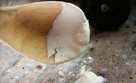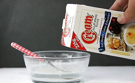 Add whiting to the solution until the mixture forms into a thick paste. Whiting can be bought in some paint stores. If whiting is not available, you can use kitchen flour.