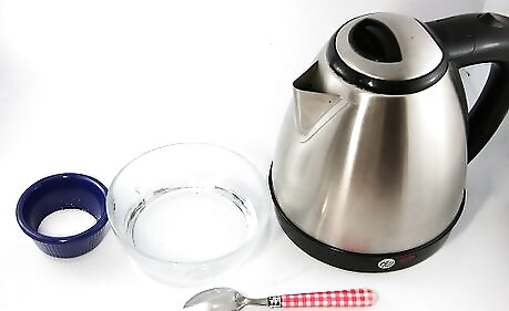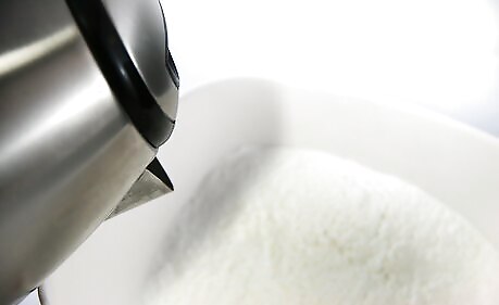 Combine 2 tablespoons of sodium perborate and 1 cup of very hot water in a large bowl to make a sodium perborate hot bleach solution.