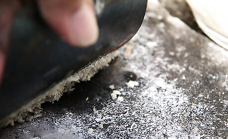 Apply the paste to the stained area in a ⁄4 inch (0.6 cm) thick layer using a wood or plastic spatula. Make sure you spread the poultice evenly on the stained area. Let it sit until it's dry.