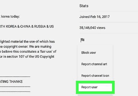 Click REPORT. It's at the bottom of the window. If you choose PRIVACY, or NONE OF THESE ARE YOUR ISSUE, you'll be redirected to a page that displays applicable policies. To report the channel, you'll have to choose a different option.