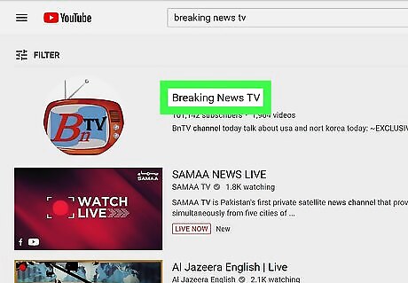 Search for the channel. Type the channel's name into the search bar at the top of the page, then press ↵ Enter or ⏎ Return.