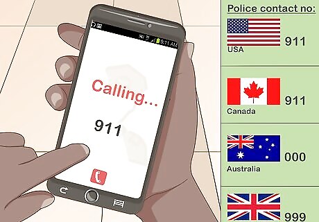 Call the police. Immediately report the hit-and-run, even if you weren’t hit. You’ll need a copy of the police report. If you or someone else needs medical treatment, you should call for an ambulance as well. However, if it was a small accident and no one was hurt, the police may not respond to the scene and you may need to make the report at the police station. If you are in the U.S., then call 911. In Canada, call 911. In Australia, call 000. In the U.K. or Ireland, call 999.